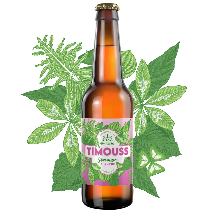 Bière blanche légère et douce au Géranium Rosat, plante emblématique de La Réunion. Médaille d’or.